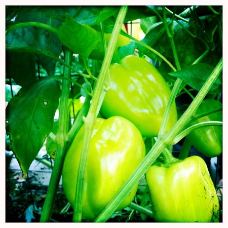 Here is my yellow pepper plant- they are still a light green color. But, they look beautiful!